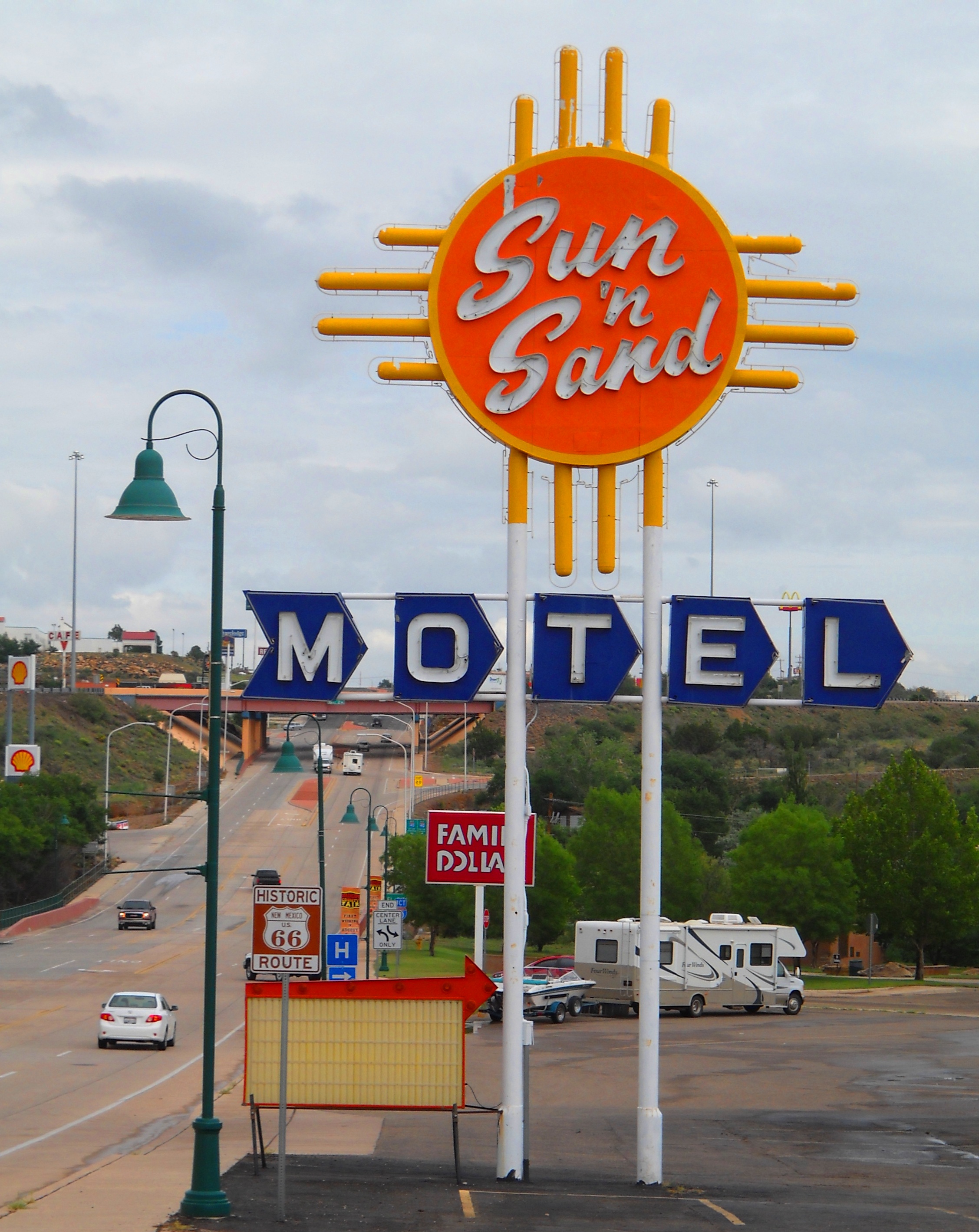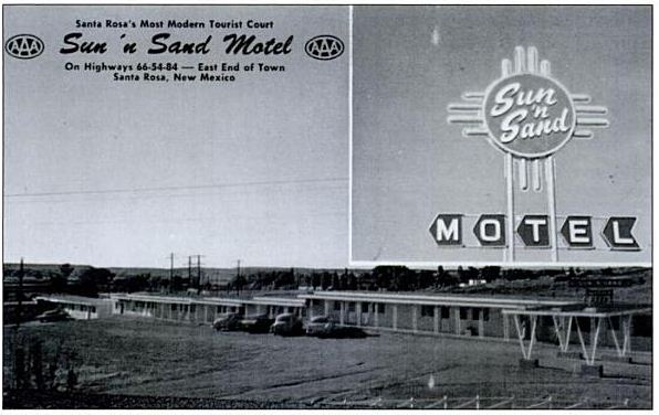 Also along the Route is the Sun ‘N Sand Motel. This motel’s neon sign had been restored recently and features the sacred sun symbol of the Zia Pueblo Indians -four points radiating from a circle symbolizing Life.
