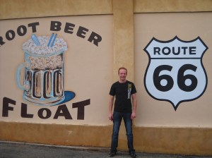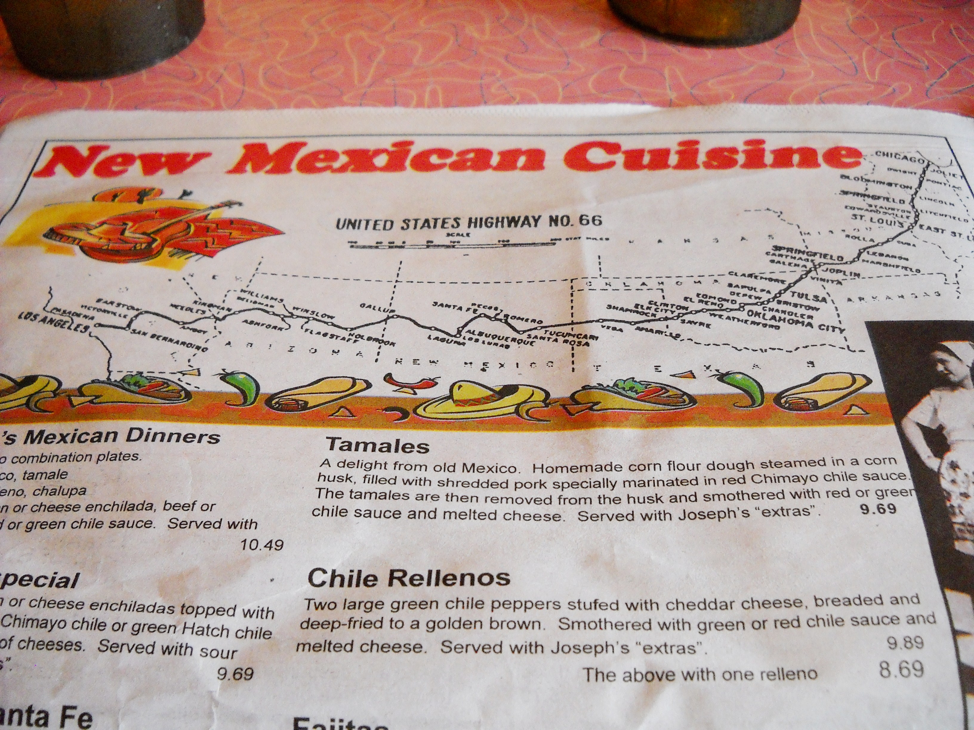 The Club Café opened in 1935 and sported the well-known Fat Man sign. His smiling face greeted hungry Route 66 travelers in Santa Rosa, and became synonymous with the Route itself. The Club Café closed in 1991, but the building and attendant sign were rescued by the Campos, who own Joseph’s Bar & Grill, a continously running restaurant on the Route since 1956 when it opened as La Fiesta. Unable to currently renovate the Club Cafe building itself, they installed the Fat Man on their own eatery, thus preserving his satisfied visage for the coming years. (The older, original Fat Man sign is on display at The Route 66 Auto Museum.) We treated ourselves to the New Mexican cuisine at Joseph’s and were delighted with the experience. I myself had the Blue Corn tortilla enchiladas, which were to die for, and which I highly recommend. Just one bit of advice, though. If you, like myself, are not used to high fibrous, whole grain food like blue corn, you may be surprised at how uncooperative your digestive system becomes about breaking it down. It gave an entirely new meaning to whole foods. That’s all I’m saying about that.