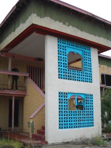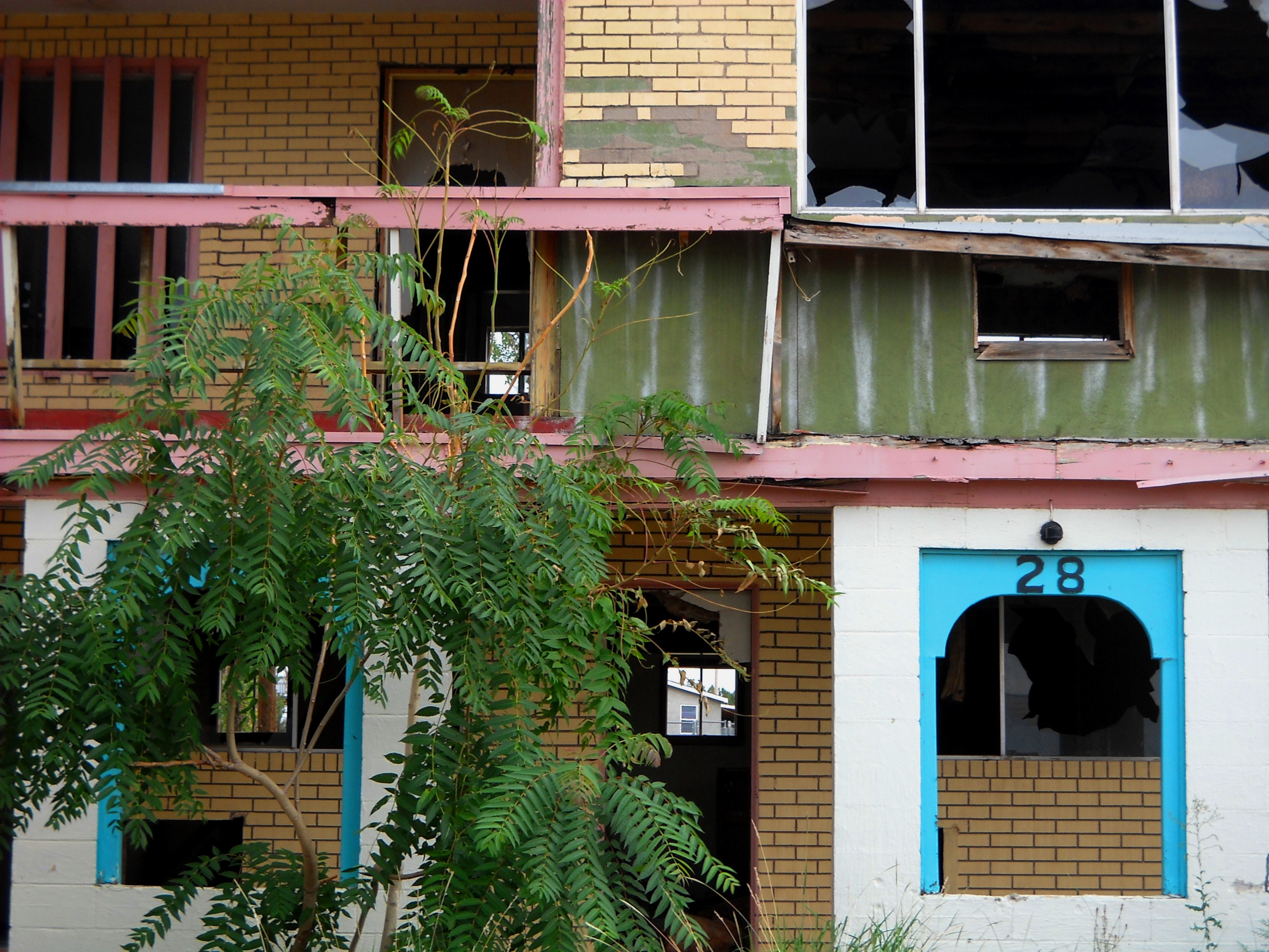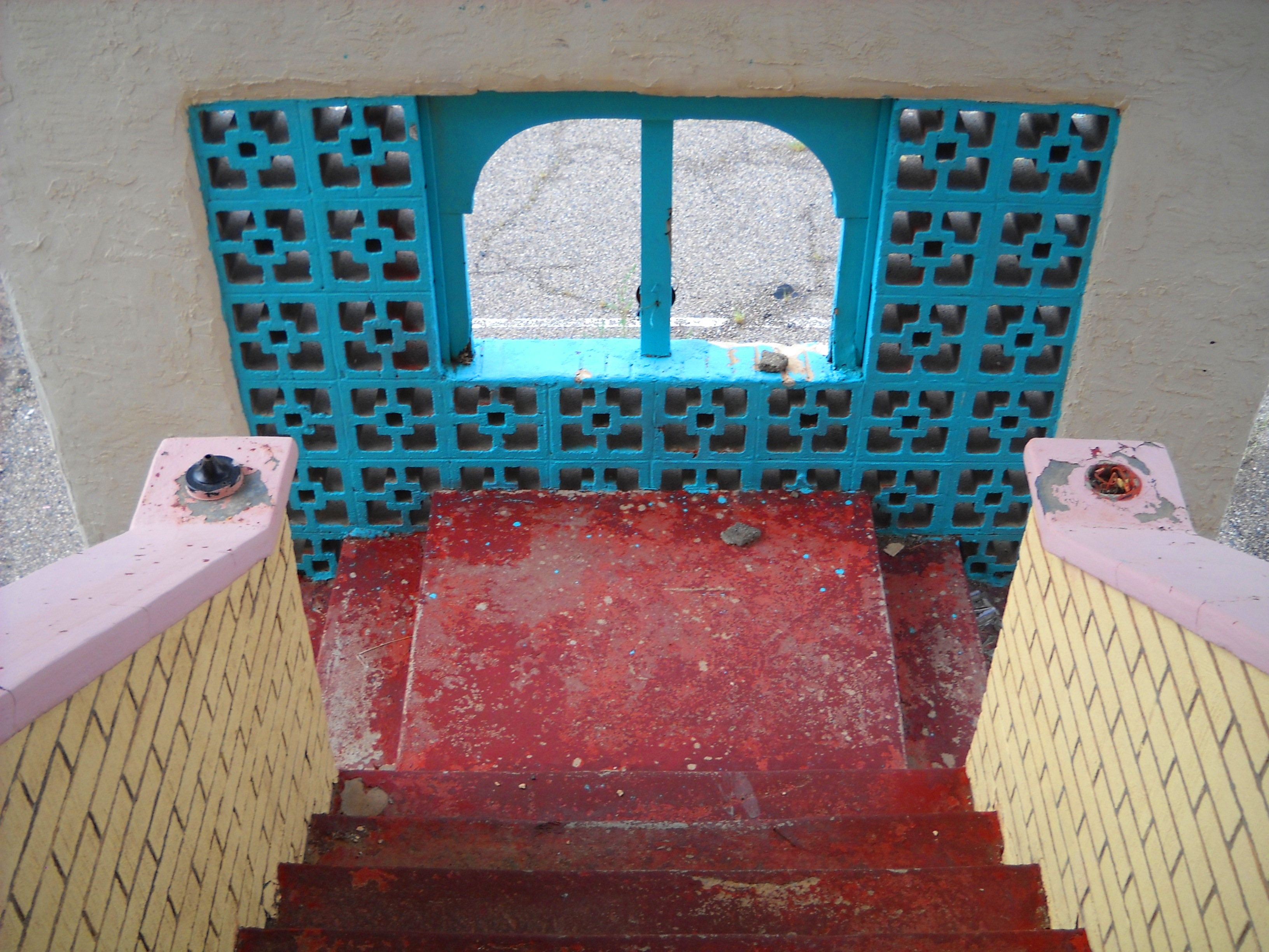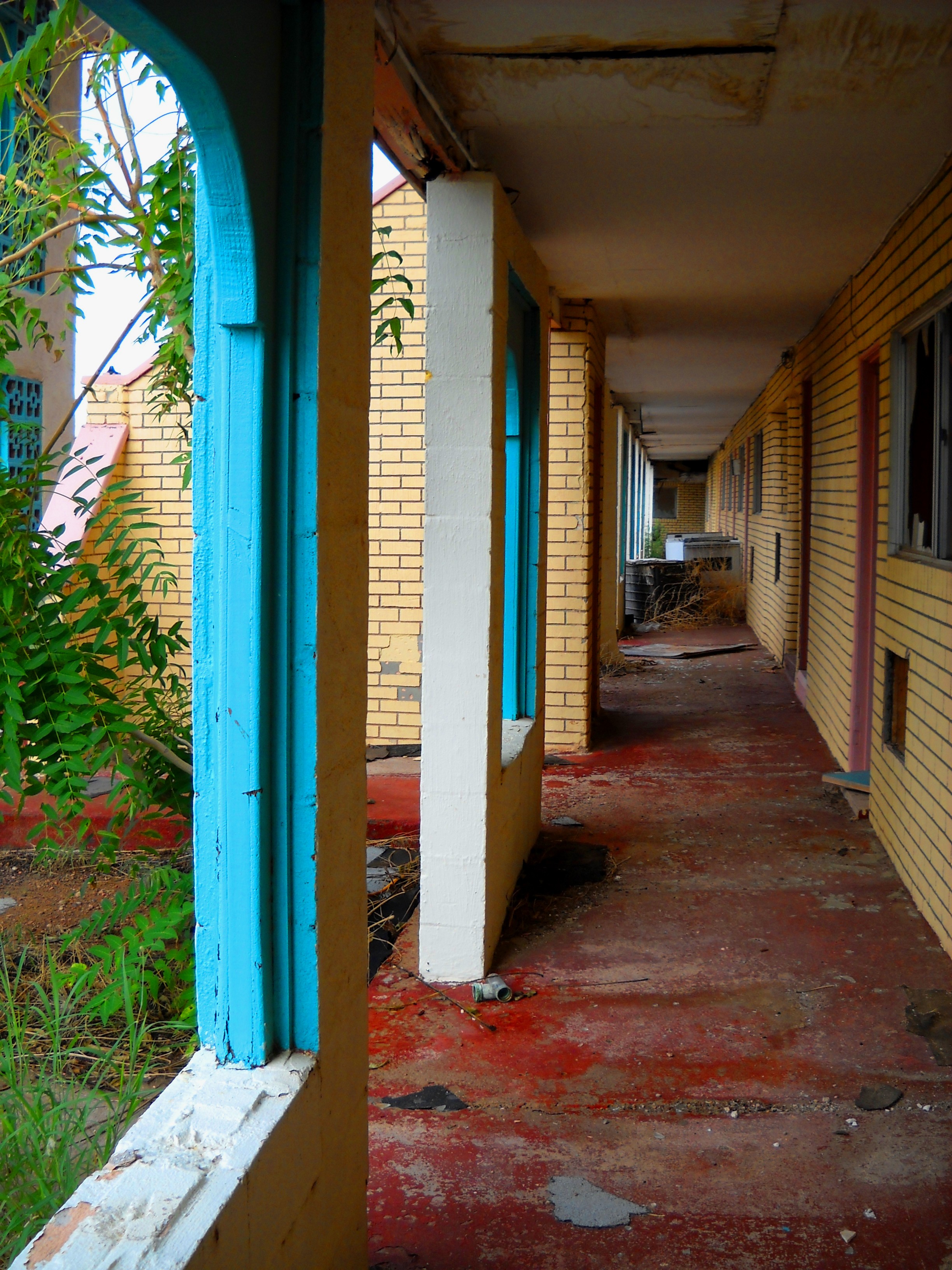 I was so charmed by the beautiful lines and colors of this motel, the contrast between the beauty and the desolation, that I took many, many photos. More are available at: