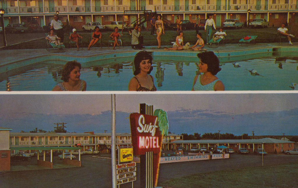 A very helpful Santa Rosa resident who saw my images on Flickr has kindly informed me that the motel I photographed was not the Surf Motel. The Surf Motel, pictured in the postcard image below, is actually still operational and now does business as The Budget 10 Motel.