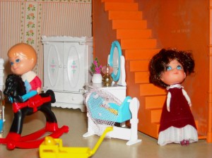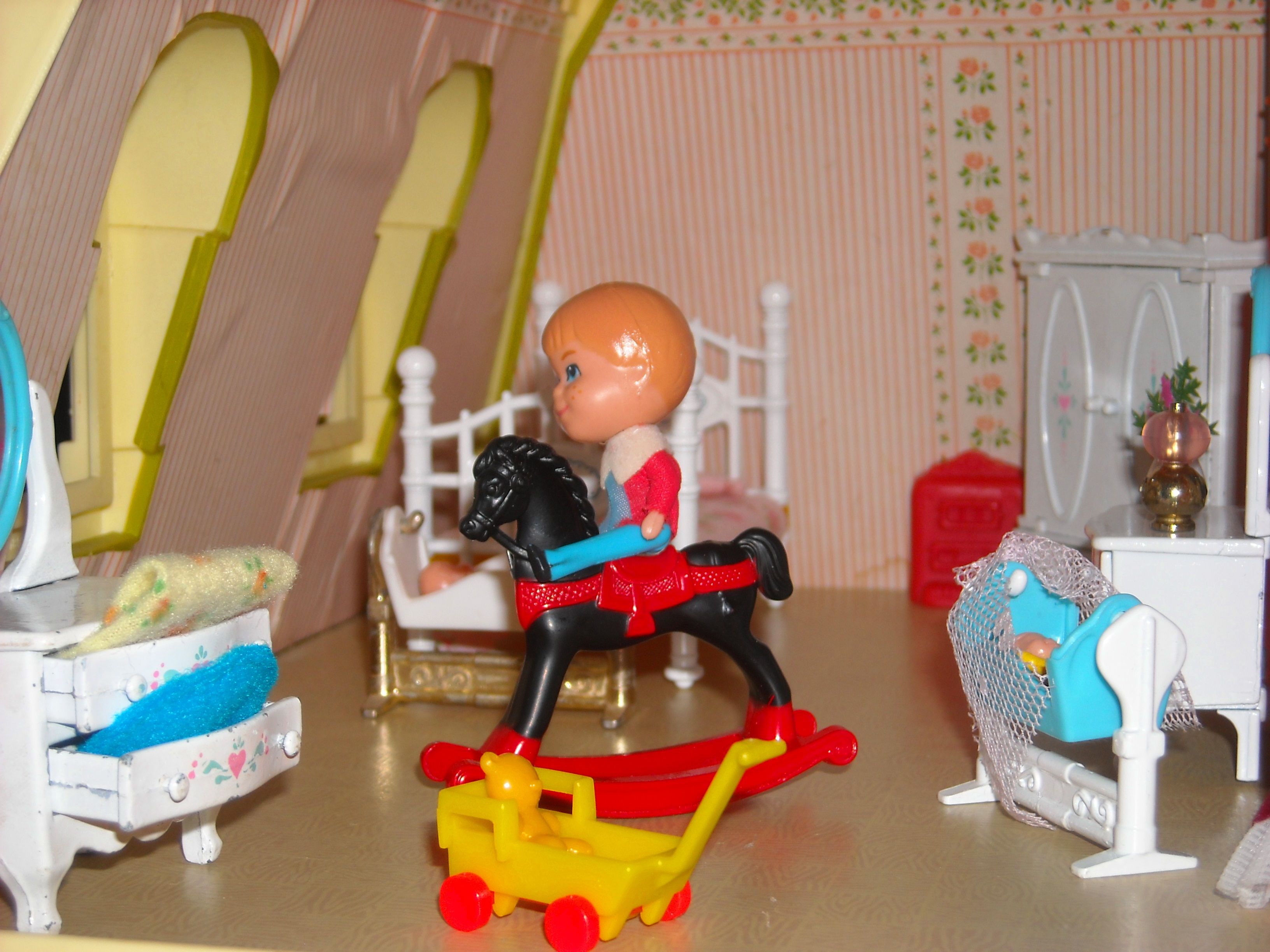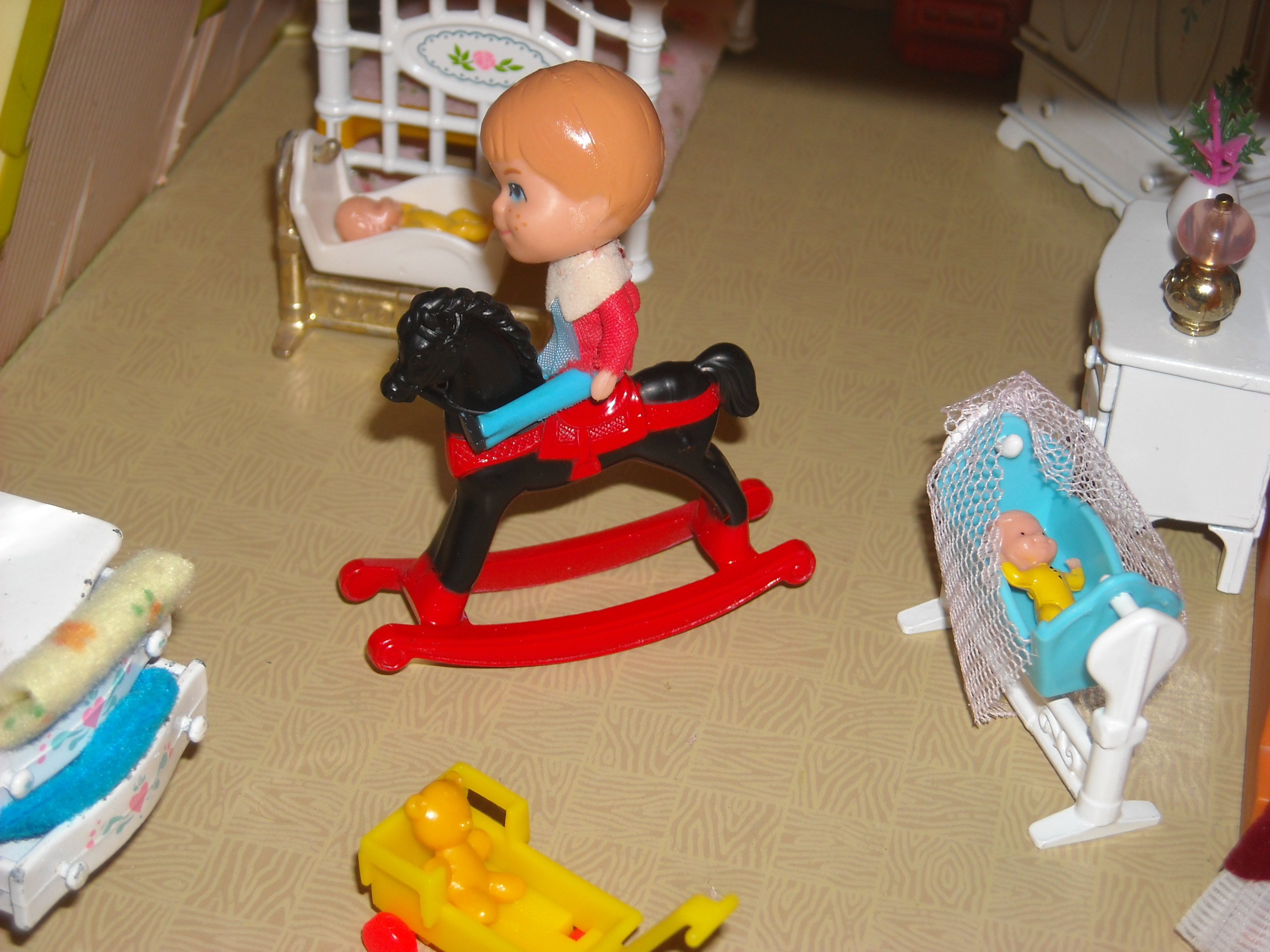 • Like the rest of you, I am 33 and had this dollhouse as a kid. I still have most of it. I remember playing with it from time to time, but what I remember most was my mom didn’t let me play with it very often because she didn’t want it messed up! The baby was her constant worry … she didn’t want me to misplace it. Most of my memories of this dollhouse is of my mom NOT wanting me to play with it!!! hahaha …. if you don’t want your kids to play with it now, put it away … out of sight, out of mind. =) Or else they will turn out like me! hahaha =)
