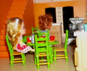 • Still have yet to add anything new… I have seen the light-up log set on ebay a time or two, but it is consistently priced around $50-60 and I just don’t want to get CrAzY ~lol. Last week I was on the Oregon Coast and saw the little piano with stool in an antique shop, but it was $45, and if it comes to buying the kids dinner that day on vacation, or owning the Littles piano, I guess I had to feed the children… hee, so no piano just yet 🙂