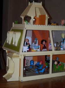 i got it for christmas around 1984. I loved it and played with it for many years. I still have the house and the side extention with clear roof. I also have load of furniture and the people. I still have the lights and logs for the fireplace although they have come away from the fire place over the years. My 3 yr old son likes to play with it but i hate pulling it out for him to play with – I just want to keep it! Not sure why I don’t have any girls to pass it onto.