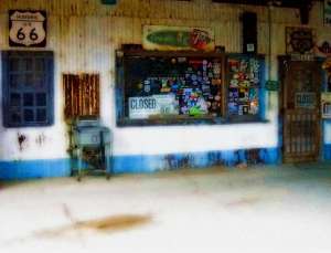 There was definitely much to see. Coffee and my passport stamp were not looking to be on the agenda, though. Um, hello? 4:45 am? The store was definitely not yet open for business. There was plenty of great Route 66 stuff to see outside, though, so we wandered around snapping pictures with abandon.