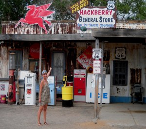 We headed for the Hackberry General Store, where we hoped to find coffee, wonderous Route 66 sites, and acquire the next stamp in my passport!