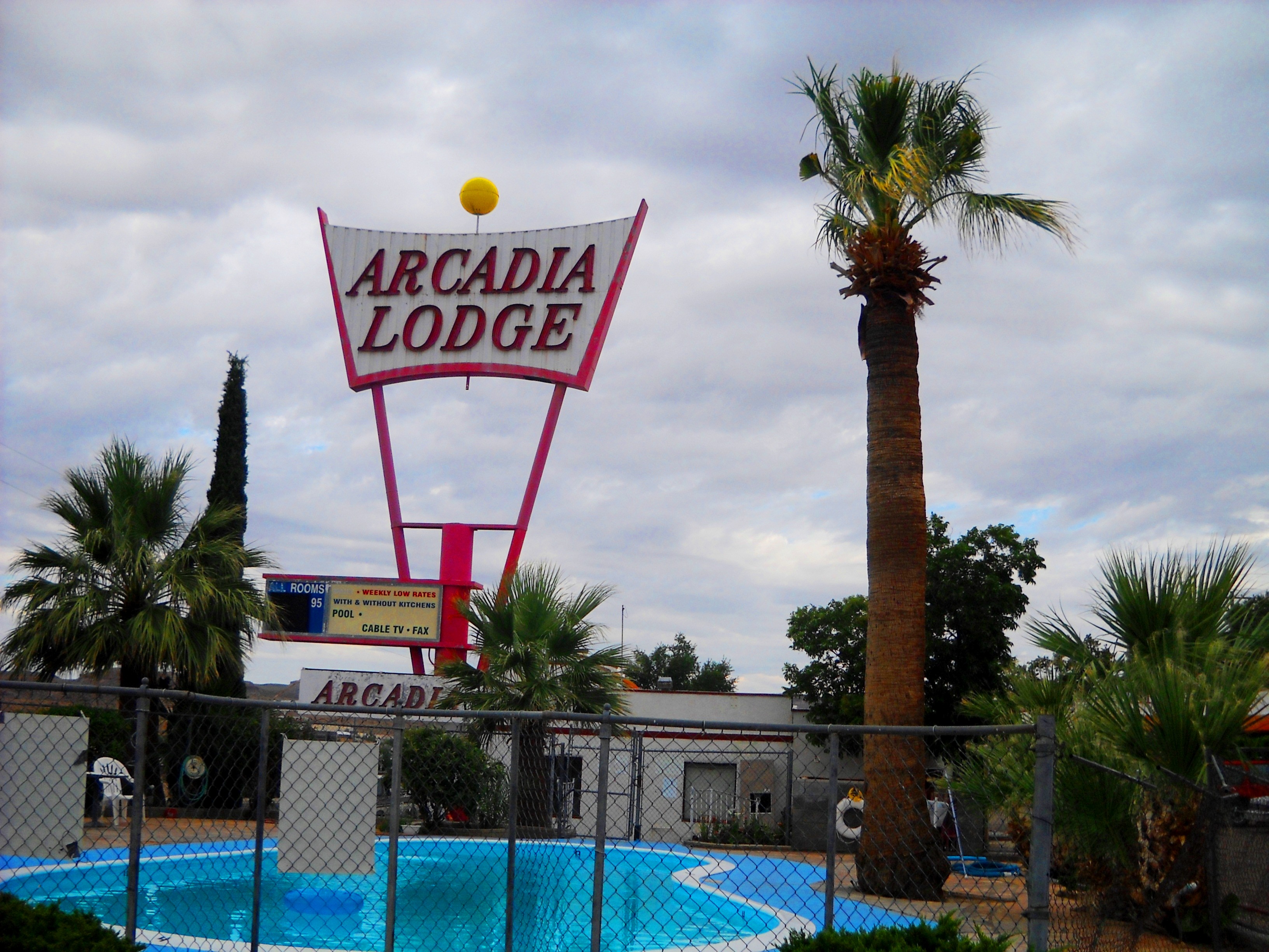 Up the mountain aways from Cool Springs lies Ed’s Camp. Here Ed Edgerton gave up gold mining to open a camp site to travelers of the Mother Road. This place remains fairly intact, though run-down, but it is privately owned now, and completely forbidden to tourists. The no tresspassing signs are everywhere, and unlike the Meteorite Museum site, Ed’s Camp has the look of a place that really means it. As in, you may very well find yourself staring down the short end of a sawed-off shotgun if you step on their land. I think there was even a sign somewhat to this effect. We parked to look, but did not get out, and the only reason we parked at all is because Ed’s Camp is supposed to be the location of the only living Saguaro Cactus on Route 66. I so wanted to photograph a Saguaro cactus. Or even just look at one. We hadn’t seen one yet. And we never did -I spied nothing even remotely resembling a Saguaro at Ed’s Camp, and one wonders if perhaps the owners of the property cut that sucker down to further discourage tourists. It really just had that air about it…