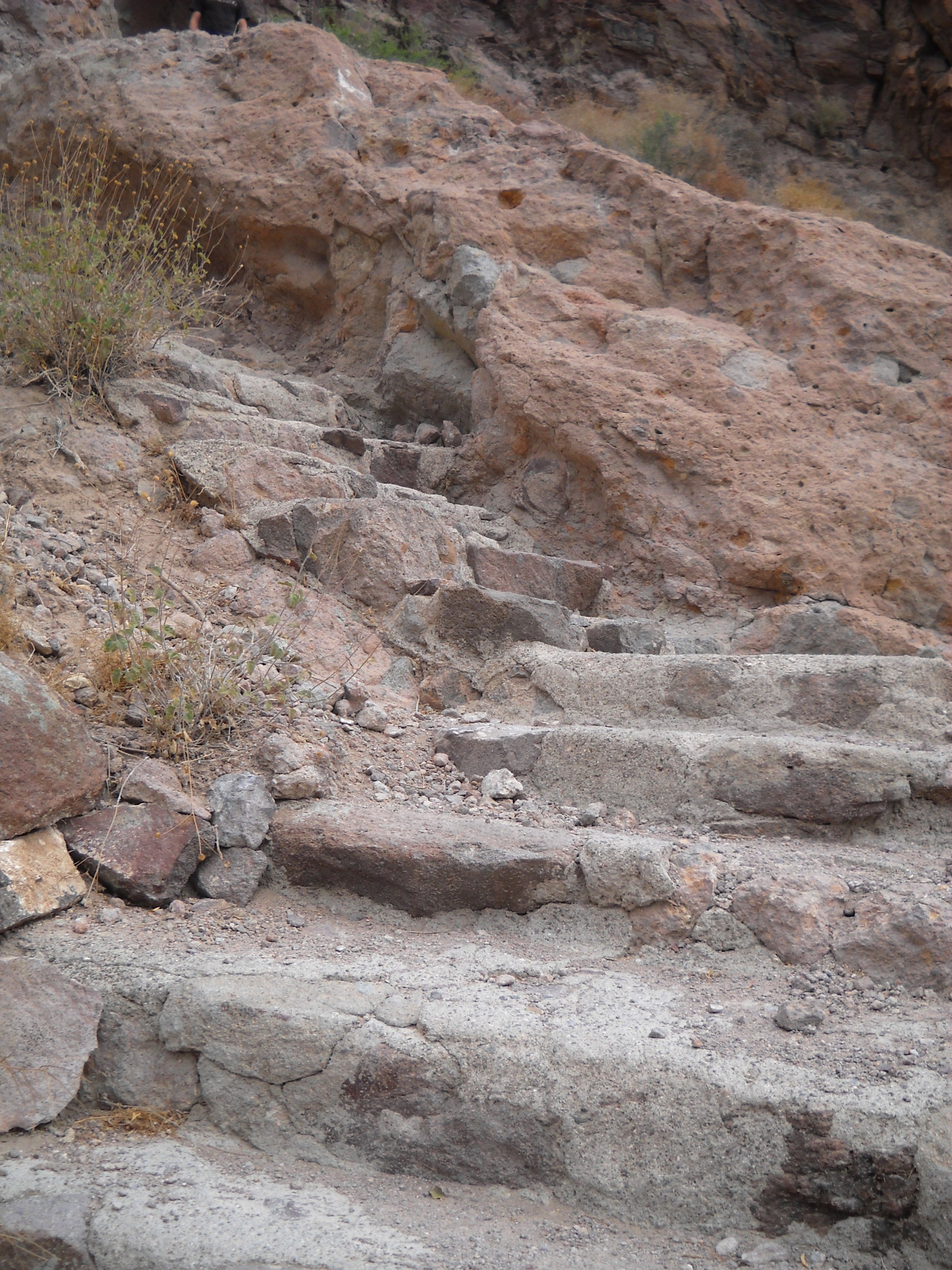Our EZ 66 Guide informed us that near Milepost 30, we would encounter a wide spot on the shoulder to park, and would see the 30 rock steps that lead to Shaffer’s Fish Bowl Springs: a man-made basin dug out to collect water from a seep in the mountain. Now I love the EZ Guide, and highly recommend it to anyone, but we never did see milepost markers on this highway and had no idea if we were anywhere close to milepost 30 at any given time. Consequently, everytime we saw anything that looked like it might be the remains of rock steps, we stopped. Most, on close inspection, were not steps at all, but at one possibility, we did find stone steps near a parking pull-out and followed them quite a ways up the damn mountain before admitting they were not what we were looking for. For future travellers, the rock steps to Shaffer’s Fish Bowl look like this: