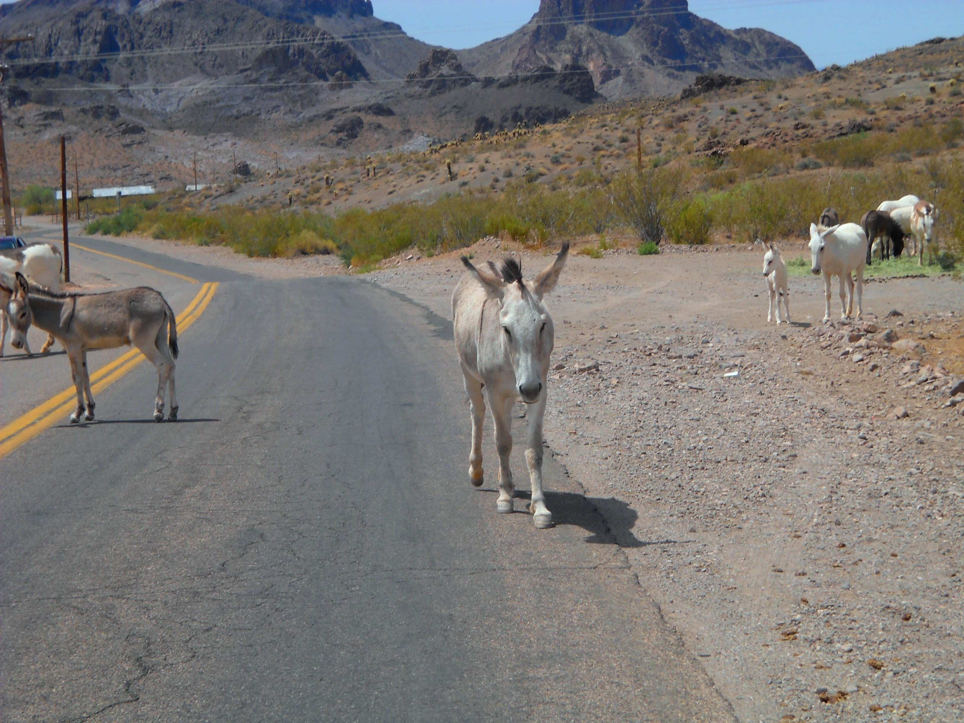 The burros the miners used in the 1800’s as pack animals were set free in the 1930’s. They flourished, and Oatman now boasts a “Wild Burro” population that wanders into town for handouts from the tourists.