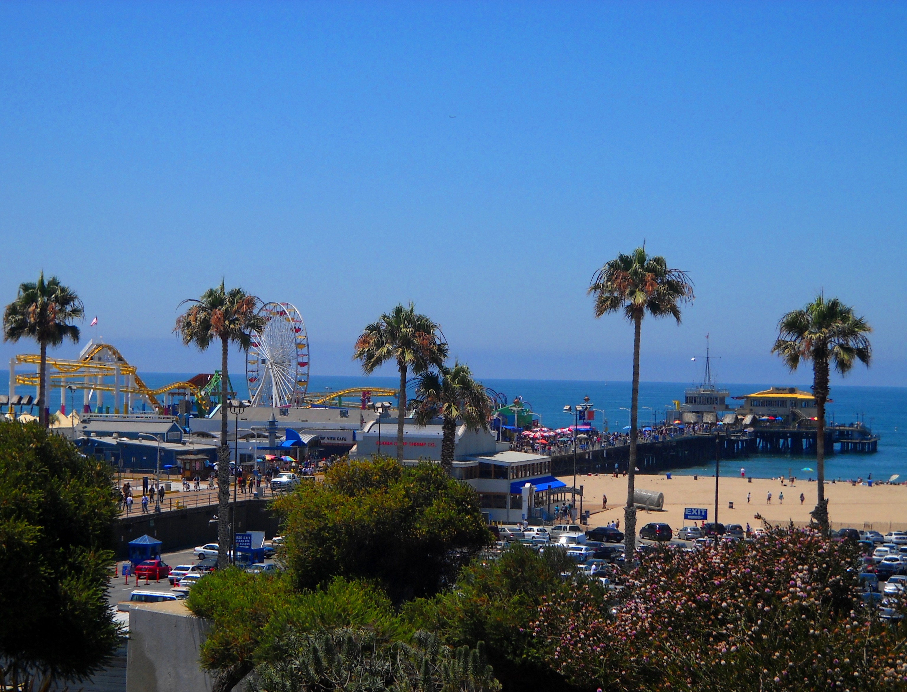 Of course, we couldn’t leave Santa Monica without first visiting the Santa Monica Pier, so after locating an espresso shop near the beach, we walked down to the pier that has delighted visitors for over 100 years.