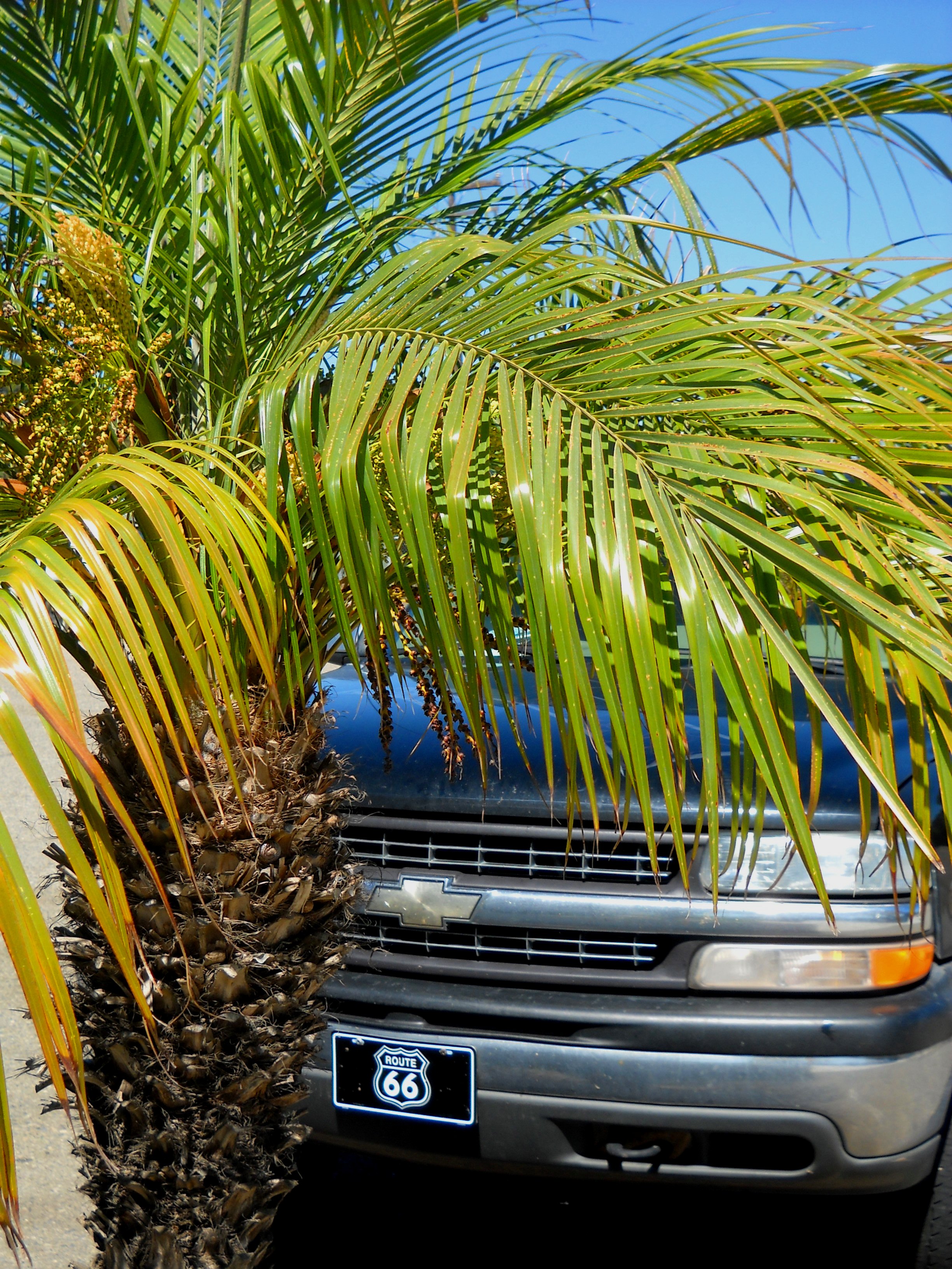 After five days of heading West, for the first time we changed directions and angled our Tahoe north, up Highway 101. The dramatic Southern California Coast unrolled ahead of us as we made our way along the Pacific’s edge. And everywhere the eye could see ~glorious palm trees.