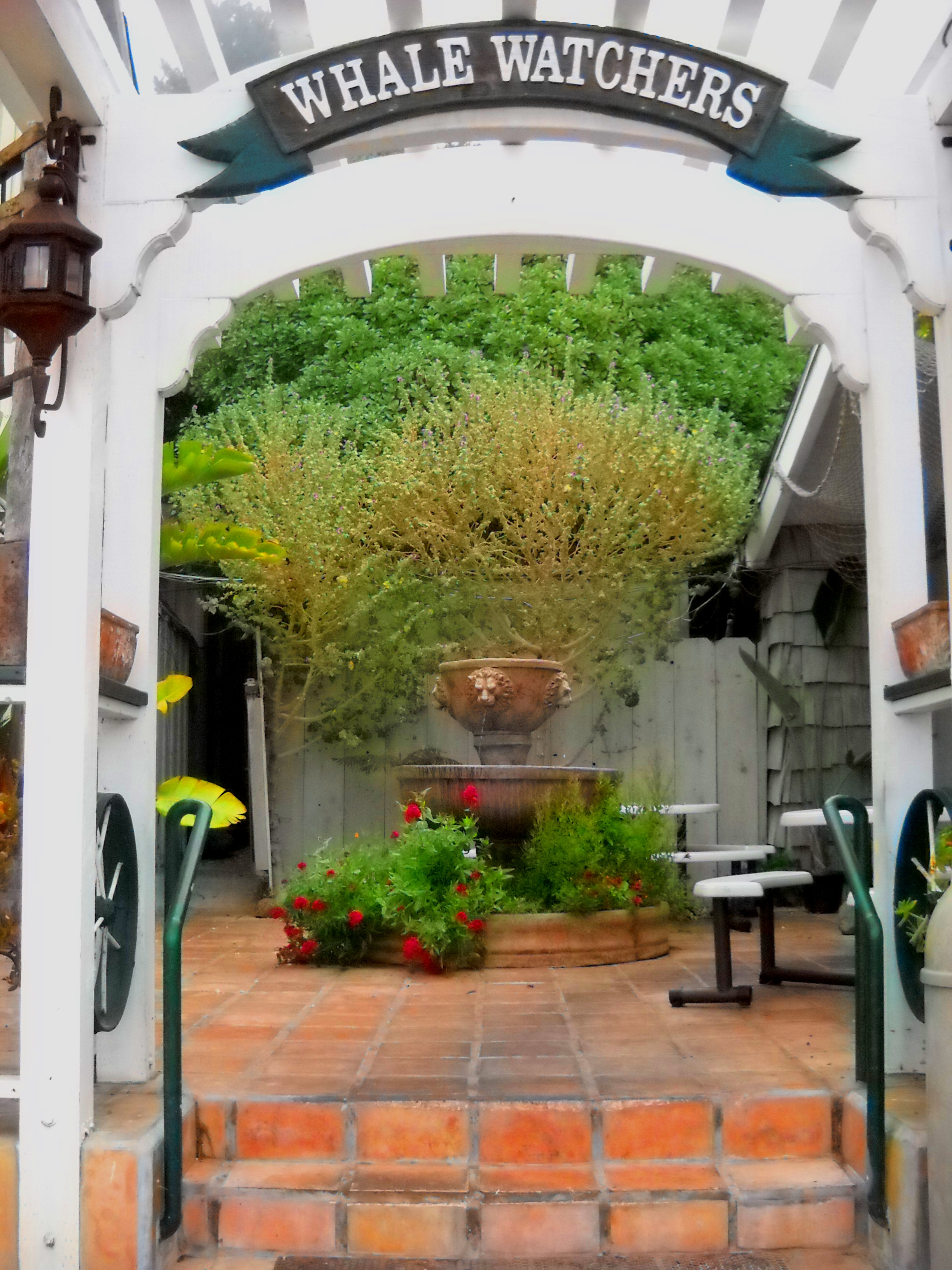 Whale Watchers Cafe was just opening and we were able to acquire a couple of nice, large cups of coffee. We sat companionably on the stone steps outside the cafe, next to a ridiculously adorable puppy who’d been tethered there to wait for his person. While the puppy chewed contentedly on the protruding edge of my flip-flop, my husband waited sagely for the first few swallows from the nectar-tree of the Gods to fill my belly before propositioning that actually sitting down to breakfast this morning would be a fine idea. Though I don’t myself actually eat breakfast, feeling that it gets in the way of my morning coffee consumption, when I have said coffee in hand, I tend to think that just about anything is a fine idea, and so agreed to this plan. It sounded like a good plan; my part of the plan was to have some more coffee while he ate.