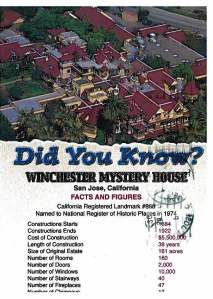 After leaving the aptly named Carmel-By-the-Sea, we headed inland toward San Jose, CA, and our next stop ~The Winchester Mystery House.