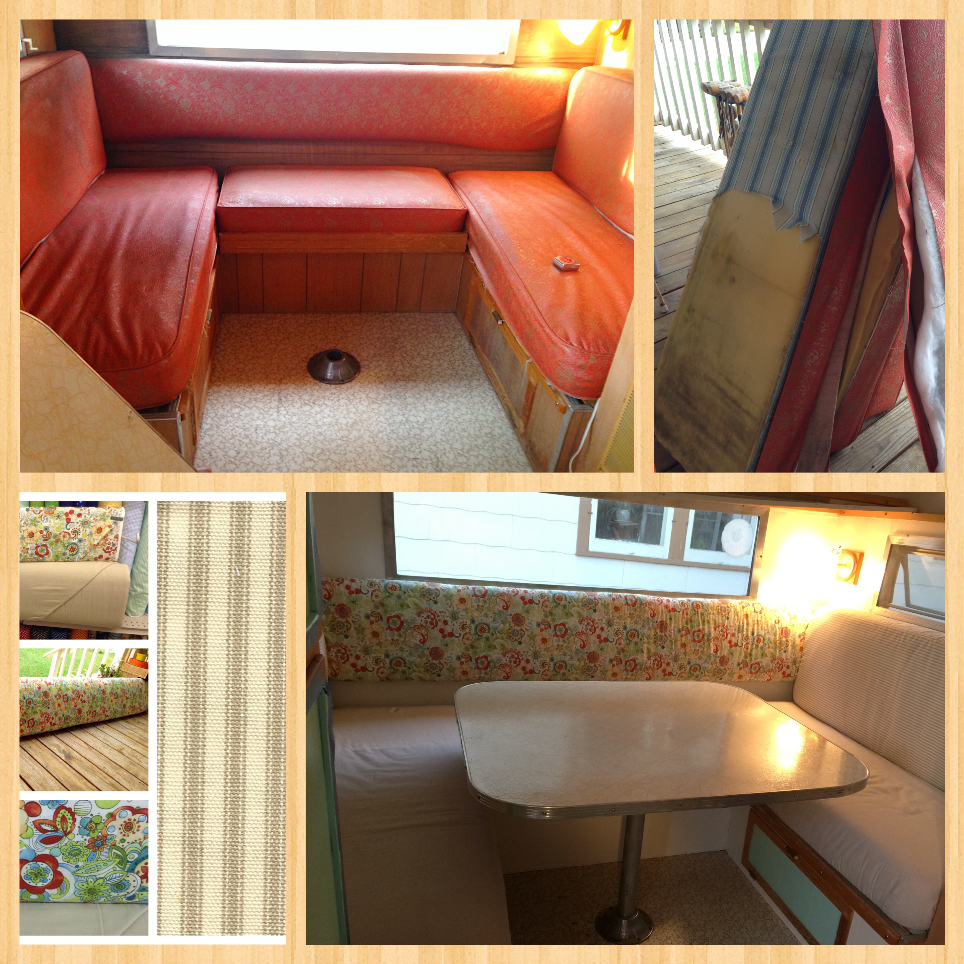1. Love what you did with your cushions! Great job! I also have a U-Shaped dinette like yours and cannot sew either, so I will be doing the same treatment to mine.