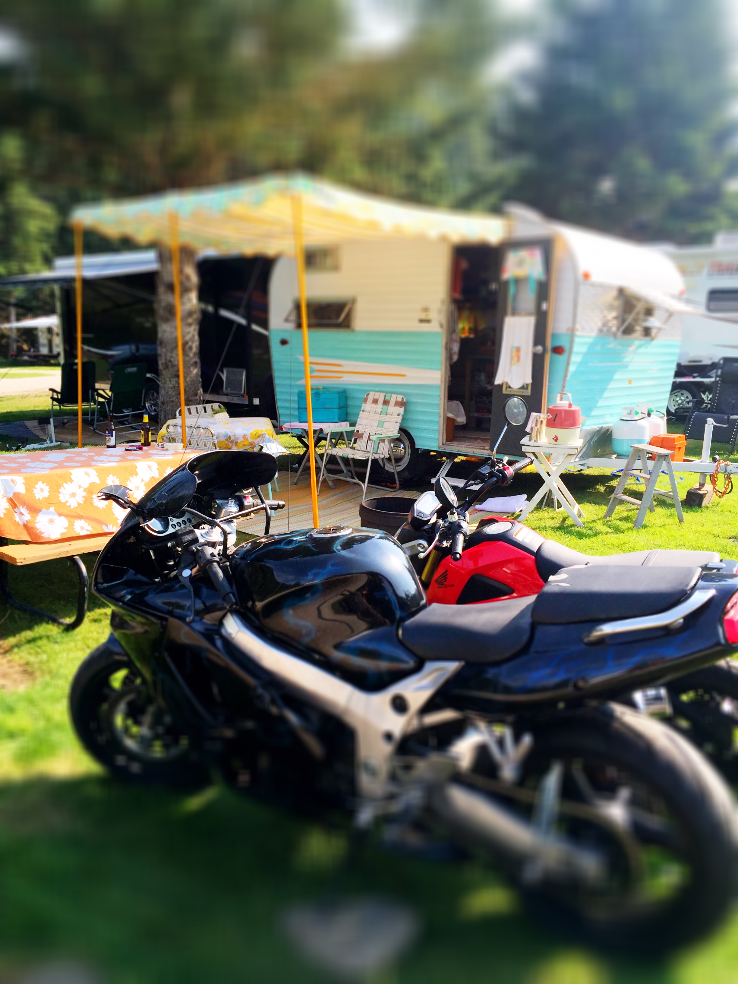 After a busy summer on the local vintage market circuit, it was time to relax, and for my husband and I to take Myrtle and the motorcycles to one of the best places on earth -Deadwood, South Dakota for the Kool Deadwood Nights Classic Car Show!!! Funny story: I was unloading Myrtle at our campsite at the fabulous Fish N’ Fry campground, handing things out to my husband who patiently stood outside her door -large outdoor rug, small folding tables, antique turquoise steel cooler, folding aluminum lawn chairs, Coleman 1950’s Patio Pink water jug, et cetera. At some point in this offloading, my husband humorously pondered that I could most likely decorate an entire house with what I’d managed to stuff in Myrtle for the trip over. Just as he was offering this enlightened male opinion, I was turning to hand him a small potted plant in a vintage ceramic pot, which he accepted with an amazed look. “Really? Is this a real plant? Is this is a potted plant? Why is there a plant in the camper?? Where did this come from?”. To which I informed him that, yes, it was real, and it came from Myrtle, of course. Why wouldn’t she have her own potted plant? It lives in there, and I go out and water it once a week.