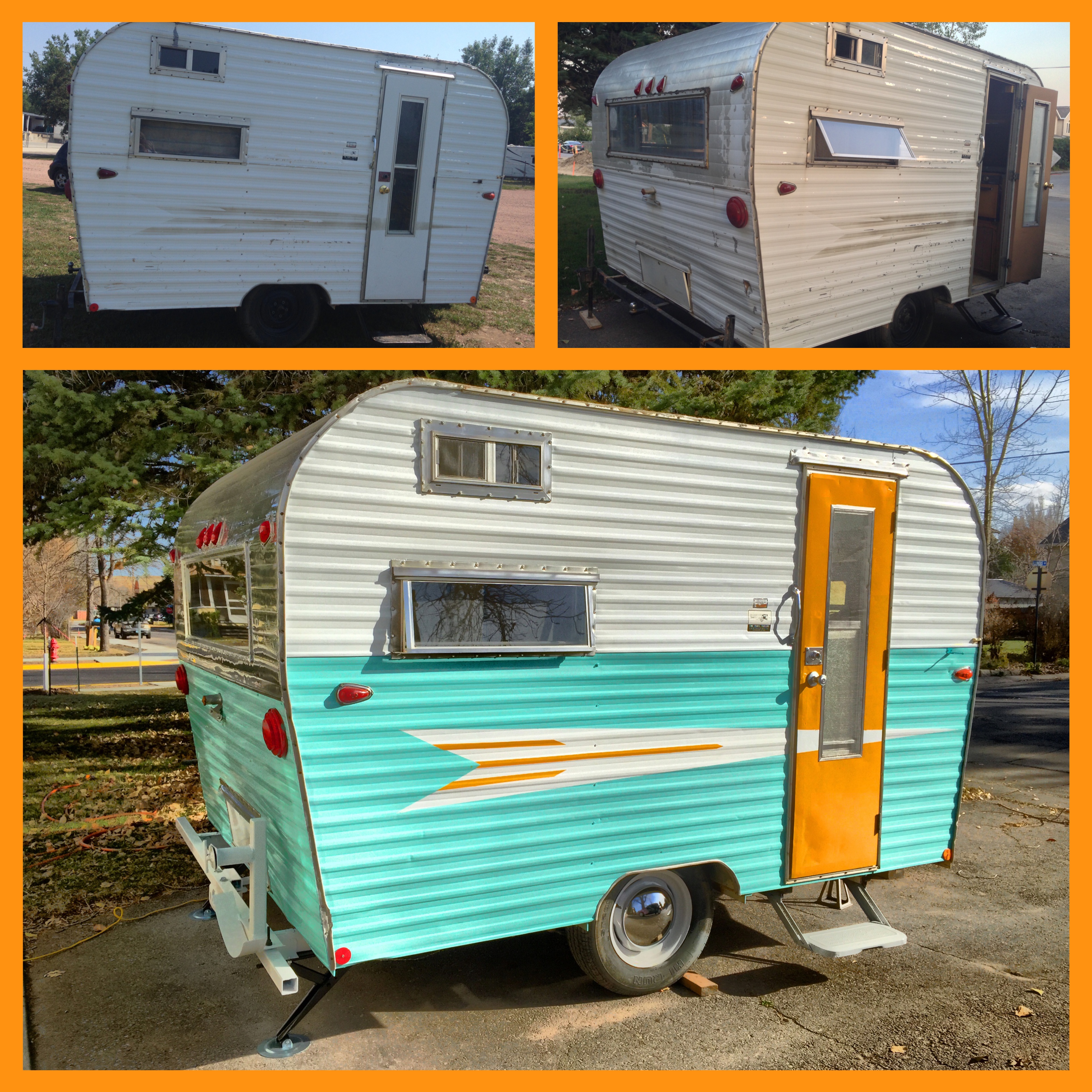 Omg!! I absolutely love her!! We just began restoring a 64′ Roadrunner. It also has all it’s original interior too & the bench seats were similar to your truck style. Turquoise with piping with manufacture tags from Logan, Ut. Unfortunately, we had to toss them because the previous owner allowed her cats to live in it and they ruined them!!! She was also convinced the trailer was a Shasta Astrodome and someone just put the name on the title wrong. The title is the original and lists it as “L&M Manufacturing Co.” It actually took me awhile to figure out what it really was because there isn’t much on Roadrunners. I read somewhere that another company eventually bought them out, so maybe that’s why another user has “ROAG” on their title? IDK. Anyway, I have been debating a burnt orange color to add to the turquoise, but I wasn’t sure how the colors would compliment each other. After seeing yours, I am convinced it will be fabulous!! I can’t find the metal polish you used, but I hope I can still get it nice and shiny. It’s quite oxidized! Did you polish it by hand or use one of those buffer balls? I also hope I have a roadrunner on the step pull out. I’ve never noticed it, but I will for sure be checking that out tomorrow!